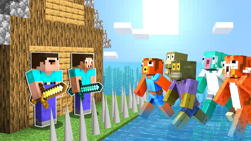 НУБ И ПРО ПОСТРОИЛИ ЗАЩИЩЕННЫЙ ДОМ ПРОТИВ РЫБ МУТАНТОВ МАЙНКРАФТ ! НУБИК И ЛОВУШКА MINECRAFT