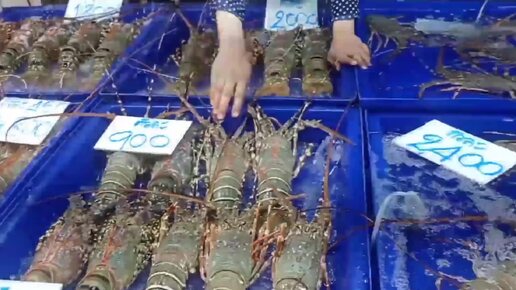Рыбный рынок в Паттайе. Экзотика Тайланда. Вкусные креветки в чесночном соусе.