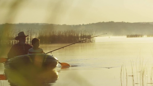 Видео для фона. Дедушка и внук ловят рыбу под приятную музыку.