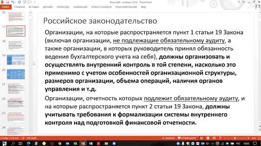 Лекция "Теоретические основы создания и функционирования систем внутреннего контроля"