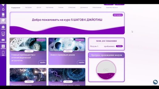 Оформление Геткурс. Страница со списком уроков. Индивидуальный дизайн, вёрстка на GetCourse. Ведическая астрология.