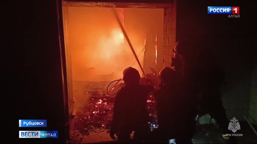В Рубцовске горело производственное здание, внутри которого были баллоны с газом