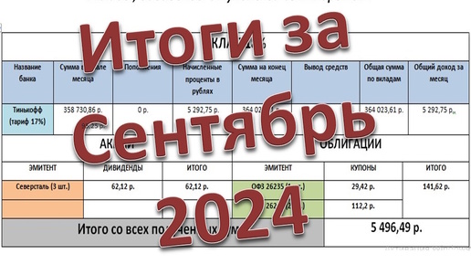 Покупка ОФЗ по плану, а также процент по вкладу, дивиденды, купоны за сентябрь 2024
