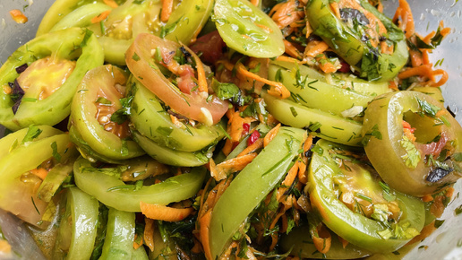 Зеленые помидоры с чесноком, перцем и зеленью. Королевская закуска #охапкадров #рецепты #кулинария