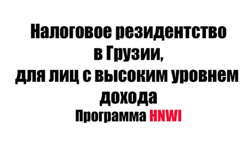 Как получить налоговое резидентство в Грузии, лицам с высоким уровнем дохода. Программа HNWI.