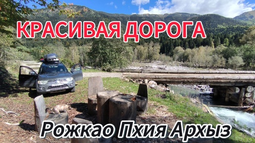 Красивая горная дорога по ущелью от Рожкао через Пхию до Архыза