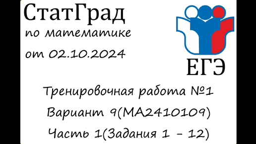 ЕГЭ2025 | Математика | СтатГрад от 02.10.2024 (МА2410109 Часть 1)