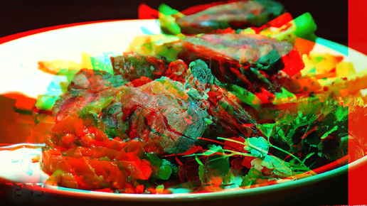 3D stereo red-cyan Лосятина в духовке в чесночно-гранатовом соусе