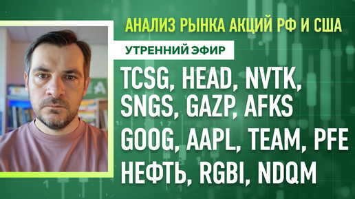 Анализ рынка акций РФ и США/ TCSG, HEAD, NVTK, SNGS, GAZP, AFKS, GOOG, AAPL, TEAM, PFE/ Нефть, NDQM