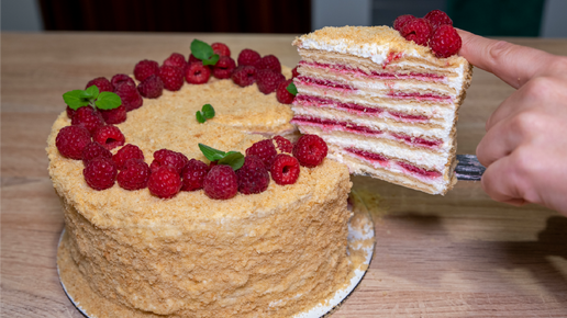 Нежный торт "МЕДОВИК". С малиной и сливочно-сметанным кремом