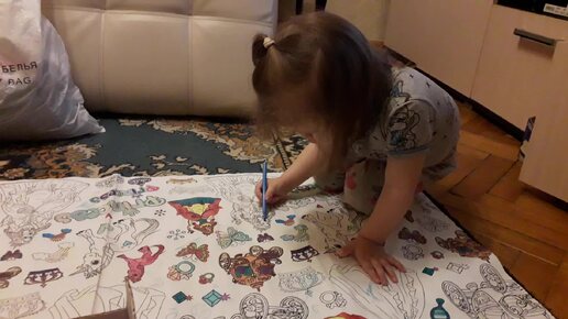 Как развивать ребёнка в 4 года. Скатерть-рисовалка, замечательная игрушка. Ксюша всегда с удовольствием раскрашивает принцесс и кареты.