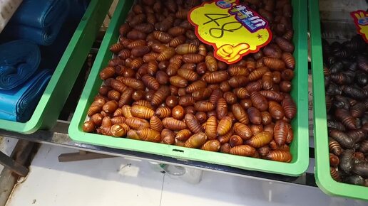 Еда не для всех: лягушки, членистоногие и личинки тутового шелкопряда в одном магазине в Жаохэ