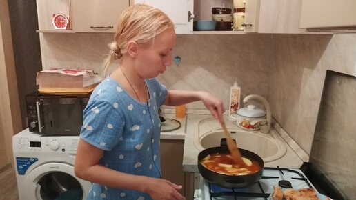Готовлю ужин! Рыбка с картошечкой в томатном бульоне с приправами 😋 Долгий день, мама хочет только есть и спать 😴