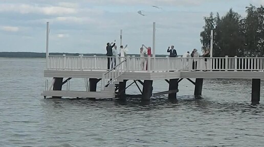 Запускают бумажного змея на свадьбе (на причале у отеля "Берёзка")