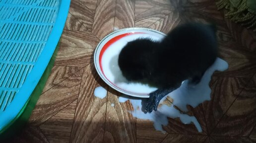 Патрик. Наша первая попытка попить молоко с блюдечка.
