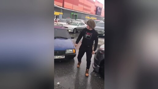 Парень в папахе раздолбил кувалдой припаркованный автомобиль!