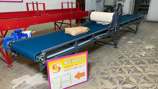 Ленточный конвейер подпрессовщик для мешков. 0920