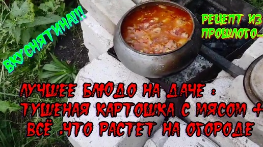 Далее: Готовим в чугунке, на открытом огне, тушенное мясо с картошкой + овощи с огорода.