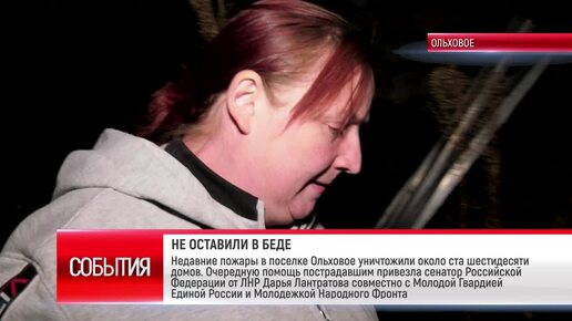 ТК "Родной". Сенатор Российской Федерации от ЛНР Дарья Лантратова привезла помощь пострадавшим при пожаре жителям поселка Ольховое