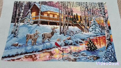 Вышивальный сентябрь. Готовая работа от Dimensions "Зимняя хижина".Много работ новых работ. Цветы.