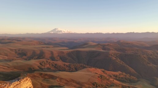 Закат с видом на Эльбрус на плато Гум-Баши