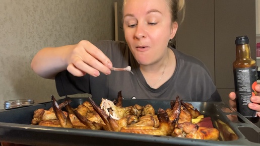 Мукбанг на ужин крылышки с картошечкой! Вкусно!