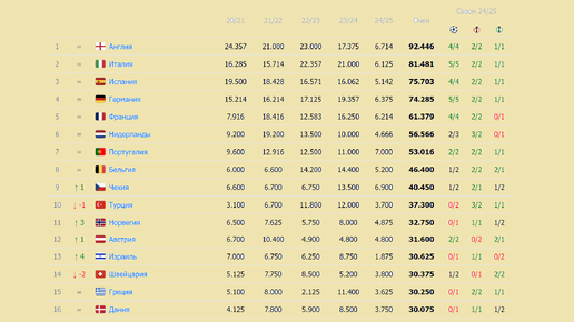Таблица коэф. УЕФА после 2 тура Лиги Чемпионов.