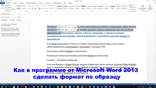 Как в программе от Microsoft Word 2013 сделать формат по образцу