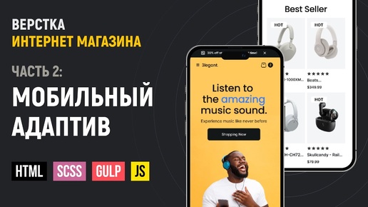 HTML верстка сайта каталога интернет магазина на Gulp сборке. Моб. адаптация. GitHub pages. Часть 2