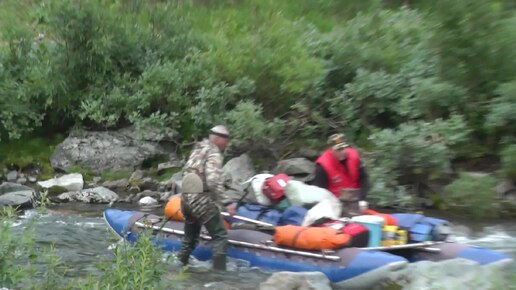 Проводка судов по р. Грубевож, левому притоку р. Хоймадъю. Басс. р. Хулга. Вид с берега. Видео Патрушева А.