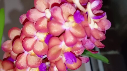 Домашнее цветение орхидеи Rhynchоrides Bangkok Sunset. Октябрь 2024 года