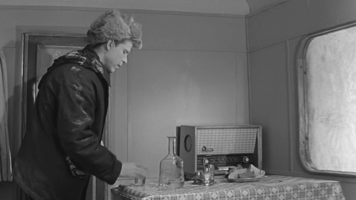 Ламповый радиоприемник "Дзинтарс" "Дзинтарс" в столовой в фильме "Девчата" (СССР, 1961) Эпизод 5.