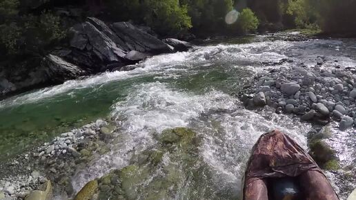 Проводка по порогу (прижиму) на р. Тыкотлова.