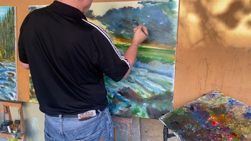 Подмалевок. Сказочное море, волны, скалы, закат маслом на холсте 80 на 120 см. Зилавди Яшуркаев.