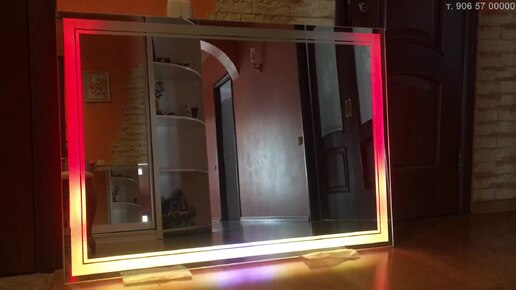 Красивое горизонтальное зеркало 115х80 см с мульти-подсветкой и дополнительным декоративным контуром