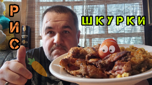Обжор не мукбанг - рисок с жареными куриными шкурками