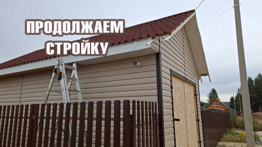 Вторая сторона гаража почти обшита. Один столб на крыльце уже стоит