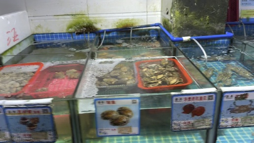 Выбор живых морепродуктов на Ночном рынке Санья, о. Хайнань, как готовят лобстера и его дегустация