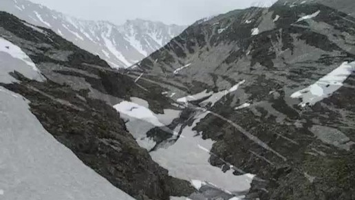 Ущелье, снежники и водопады ручья Каньонный. Правый приток р. Вангыр. Приполярный Урал.