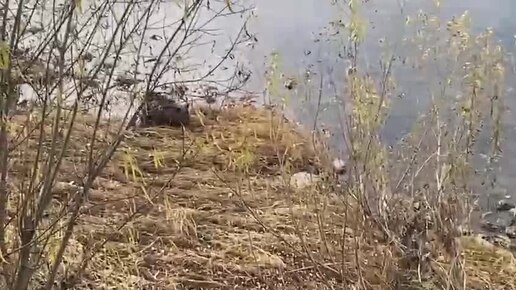 В Междуреченске медвежонка, который заплутал в городе, отогнали к дамбе. Он успешно переплыл реку и скрылся в лесу.