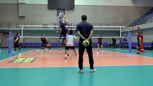 Волейбол. Атака. Тренировка. Команда Зенит Санкт-Петербург. Главный тренер Туомас Саммелвуо