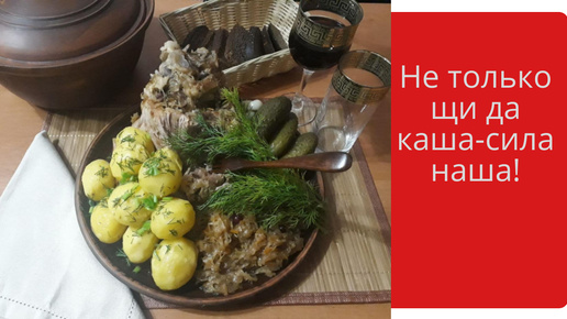 Свиная рулька томленая с квашеной капустой и клюквой по-старорусски