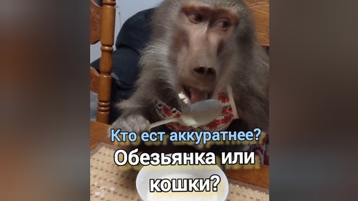 Кто ест аккуратнее? Обезьянка или кошки?