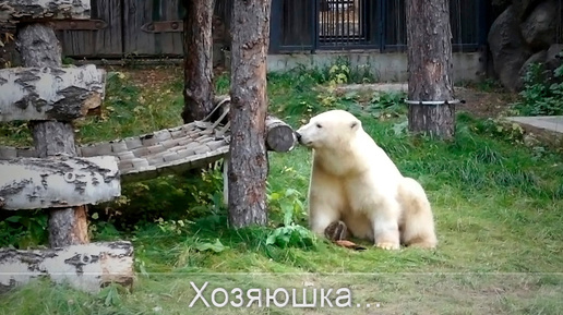 Медвежонок Белка занялась хозяйством, проверила лежанку, а Стрелка делает обход своей территории.