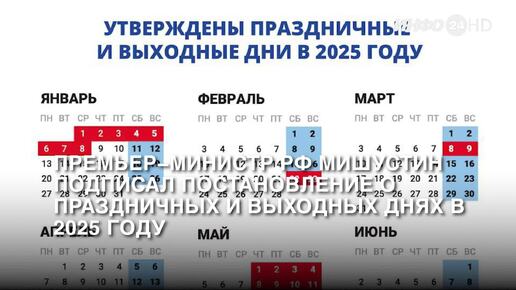 Премьер-министр РФ подписал постановление о праздничных и выходных днях (2024-10-08)