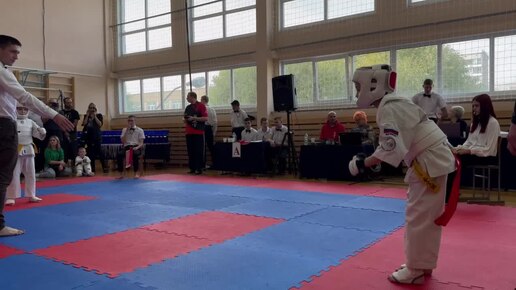 Каратэ Киокушин Барнаул 8-9лет 1й поединок . Победа!