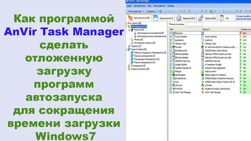 Как программой AnVir Task Manager сделать отложенную загрузку программ автозапуска для сокращения времени загрузки Windows7