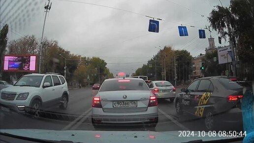 "Зачем ждать какую-то зеленую стрелку, если и так горит зеленый?" Подумали водители автобусов и поехали с третьего ряда налево.