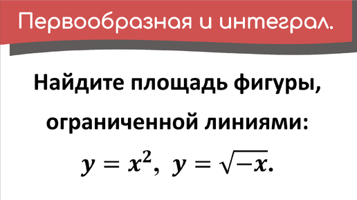Найдите площадь фигуры, ограниченной линиями: y=x^2, y=sqrt(-x). Пример 3.