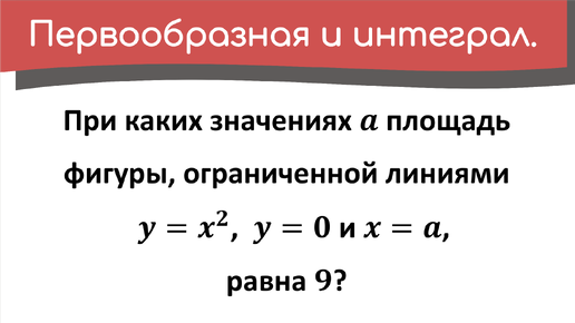 При каких значениях a площадь фигуры, ограниченной линиями y=x^2, y=0 и x=a, равна 9?